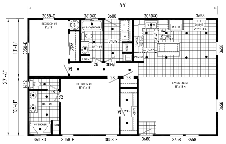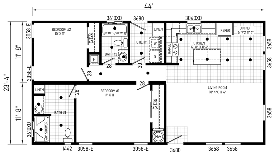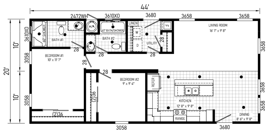 28x44 Ft Double Wide |