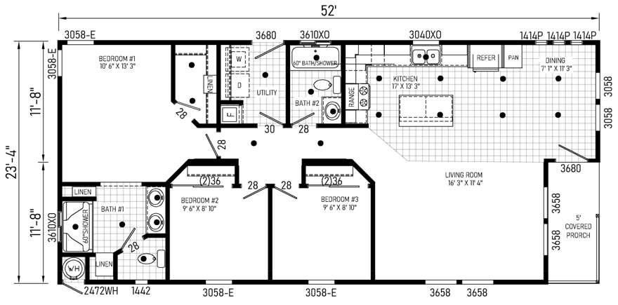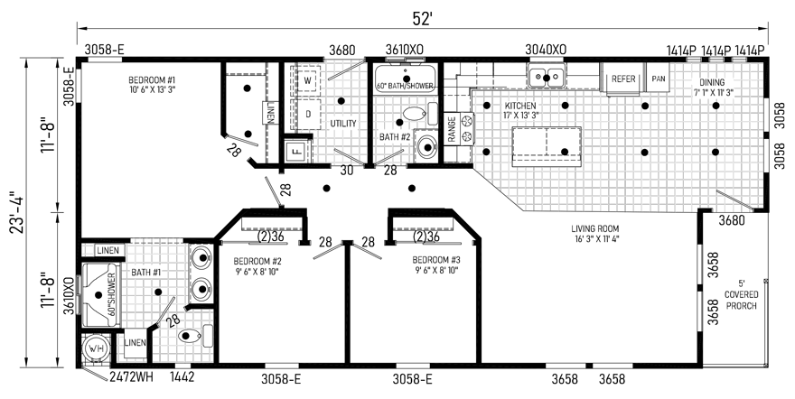 32x52 Ft Double Wide |