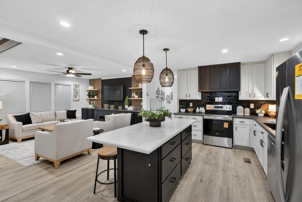 The Aura model manufactured by Cavco Goodyear has 4 Beds and 3 Baths. This 1728 square foot Double Wide home is available for delivery in Arizona, California, Nevada, & Utah.