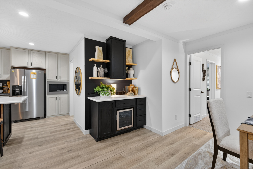 The Aura model is manufactured by Cavco Goodyear and is part of the Alpha Series. Click on the button below to view the available color selections for this floor plan.
