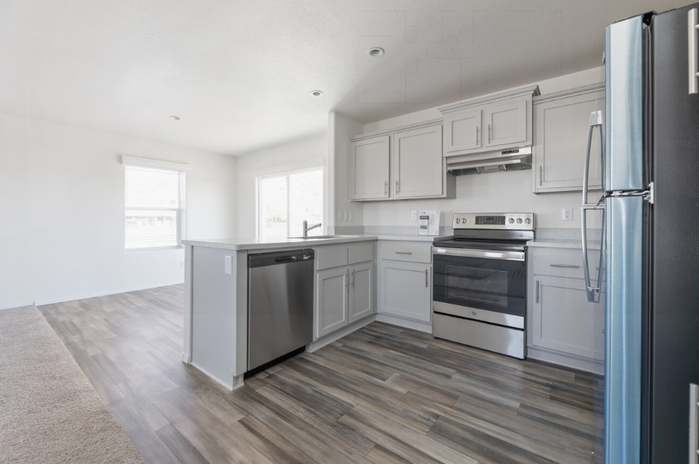 The Conrad model manufactured by Cavco Goodyear has 2 Beds and 2 Baths. This 800 square foot Double Wide home is available for delivery in Arizona, California, Nevada, & Utah.