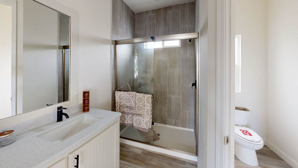 - Tape & Texture Oval Drop-In Tub and Separate Fiberglass Shower w/ Glass Door (per Plan)